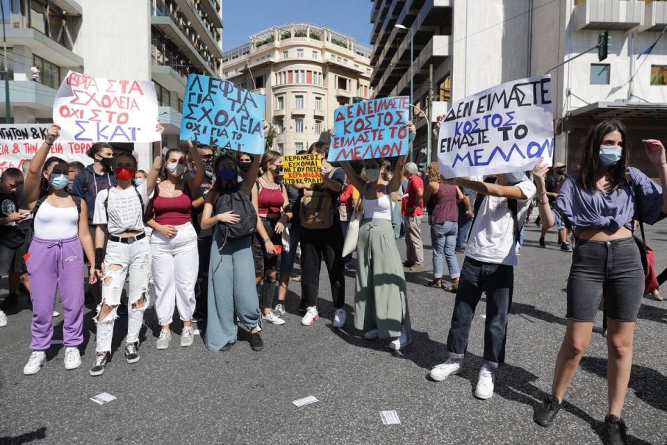 Οι μαθητές είχαν προγραμματίσει συγκέντρωση στις 12:00 στα Προπύλαια, με αίτημα τις ασφαλείς συνθήκες στα σχολείαεν μέσω κορωνοϊού.