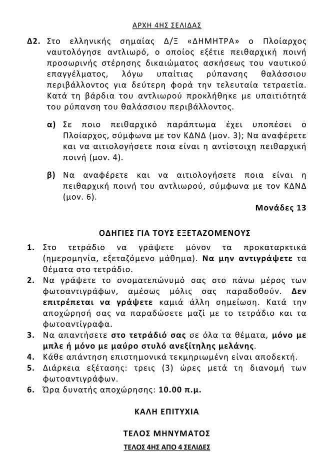 Πανελλήνιες 2022: Αυτά είναι τα θέματα στο Ναυτικό Δίκαιο - Διεθνείς Κανονισμοί στη Ναυτιλία