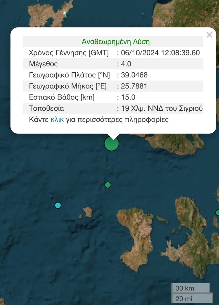 Σεισμός 4 Ρίχτερ στη θαλάσσια περιοχή νοτιοδυτικά της Μυτιλήνης