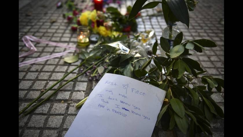 «…Έτρεχε προς τους πολίτες με ένα κομμάτι τζαμί στα χέρια... Διαβιβάσαμε στο κέντρο ότι προσπαθούμε να δεσμεύσουμε το άτομο... Τρέξαμε να τον σταματήσουμε... Προσπαθήσαμε με την αστυνομική ράβδο να τον ακινητοποιήσουμε και να του πάρουμε το γυαλί ενώ έπρεπε να βάλουμε χειροπέδες... Όμως αντιστεκόταν και δεν μπορούσαμε να γυρίσουμε το χέρι του προς τα πίσω. Η κίνηση αυτή με το πόδι στην πλάτη ήταν για να σταματήσει να αντιστέκεται και να του περάσουμε τις χειροπέδες».