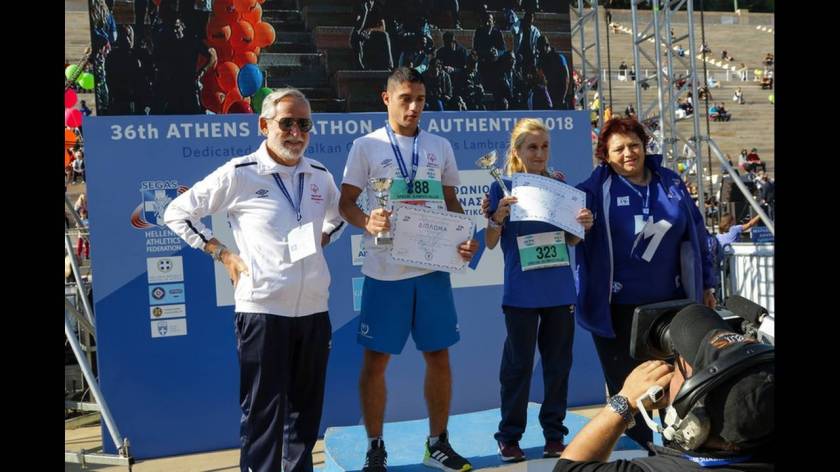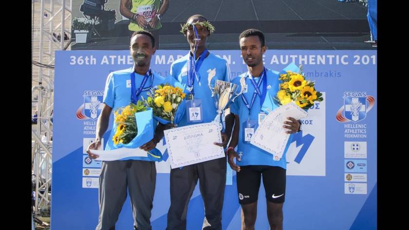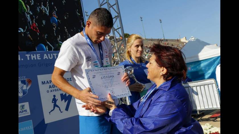 Χαμόγελα και συγκίνηση στις απονομές του Μαραθωνίου της Αθήνας, στον οποίο συμμετείχαν 55.000 άνθρωποι από 105 χώρες.