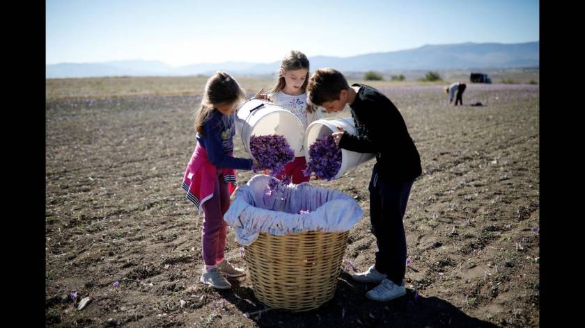 Στα καρέ του φωτογράφου Άλκη Κωνσταντινίδη αποτυπώνεται η διαδικασία της συγκομιδής του σπάνιου και πολύτιμου μπαχαρικού που αποκαλείται και «κόκκινος χρυσός».