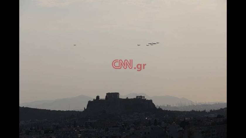 Τα αεροσκάφη της Πολεμικής Αεροπορίας διέσχισαν ουρανό της Αθήνας από τις 18:20 έως τις 18:30, στο πλαίσιο της άσκησης «Ηνίοχος 2019».