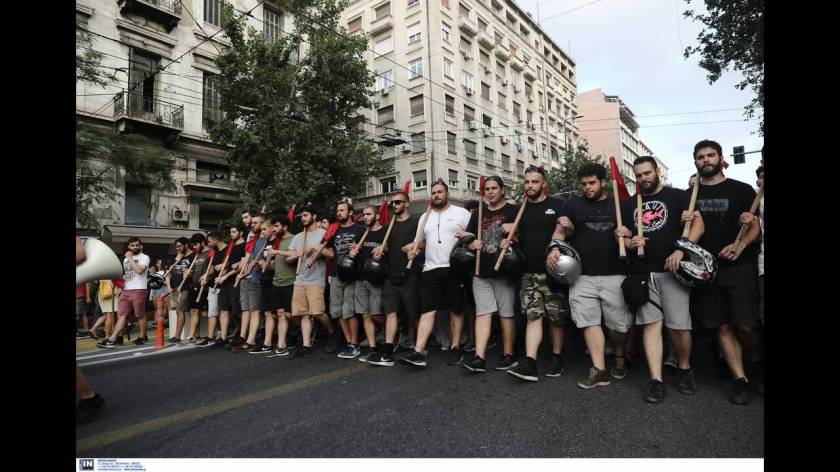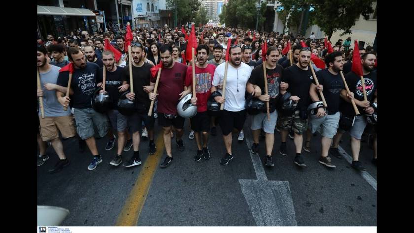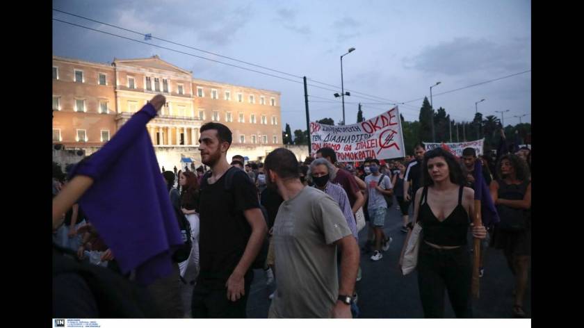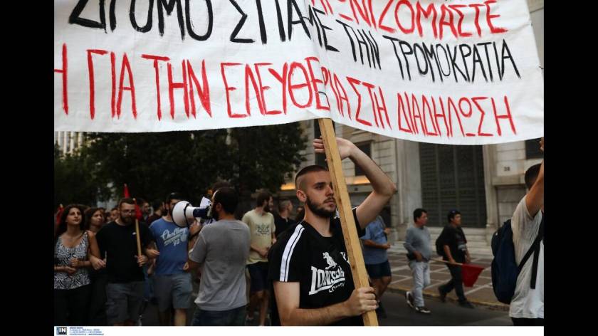 Συγκέντρωση και πορεία διαμαρτυρίας πραγματοποίησαν στο κέντρο της Αθήνας μέλη της εξωκοινοβουλευτικής αριστεράς, αναρχικές και αντιφασιστικές συλλογικότητες κατά του νομοσχεδίου για τις διαδηλώσεις.