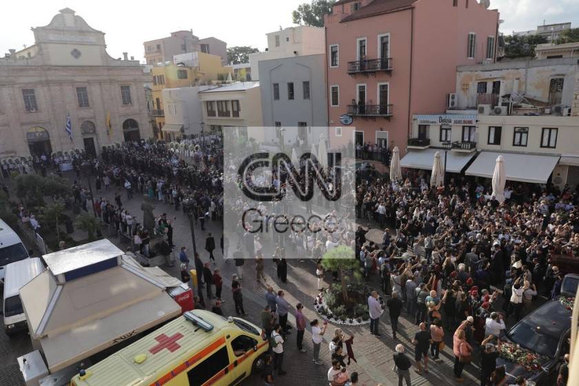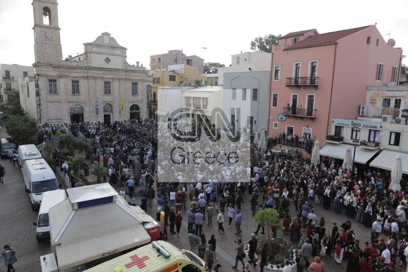 H μεταφορά της σορού από την πλατεία της αγοράς στην Μητρόπολη Χανίων έγινε με τα πόδια με συνοδεία βρακοφόρων και της φιλαρμονικής μπάντας του δήμου Χανίων.