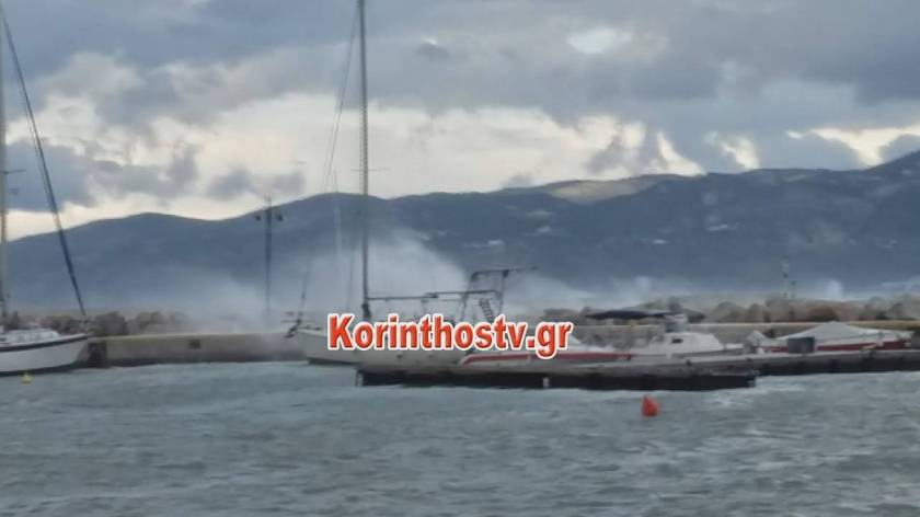 Το κύμα κακοκαιρίας σαρώνει και την Κόρινθο, όπου το μεσημέρι, τα κύματα σκέπασαν τα σκάφη στο λιμάνι, αναφέρει το korinthostv.gr.