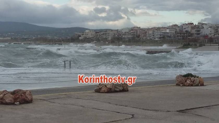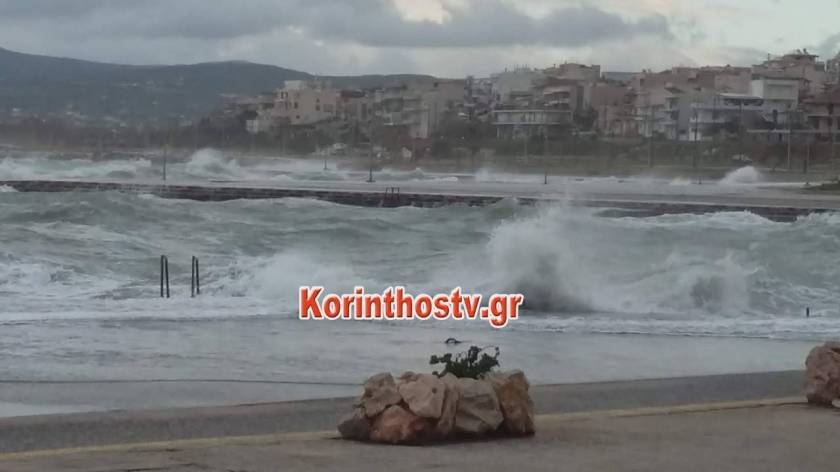Η κακοκαιρία «χτυπά» την Κόρινθο: Η θάλασσα βγήκε στη στεριά - Συγκλονιστικές εικόνες