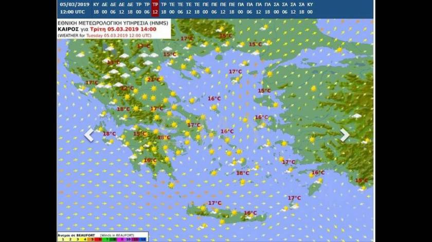 Την Τρίτη (05/03) γενικά αίθριος ο καιρός. Λίγες νεφώσεις παροδικά αυξημένες στα δυτικά και τα νότια και σταδιακά από το απόγευμα στα βόρεια. Περιορισμένη ορατότητα κατά τόπους τις πρωινές και βραδινές ώρες κυρίως στα δυτικά και τα βόρεια. Οι άνεμοι στα βόρεια νότιοι νοτιοδυτικοί 3 με 5 και βαθμιαία στο Αιγαίο τοπικά 6 μποφόρ. Στα νότια από δυτικές διευθύνσεις 4 με 6 μποφόρ. Η θερμοκρασία σε άνοδο.