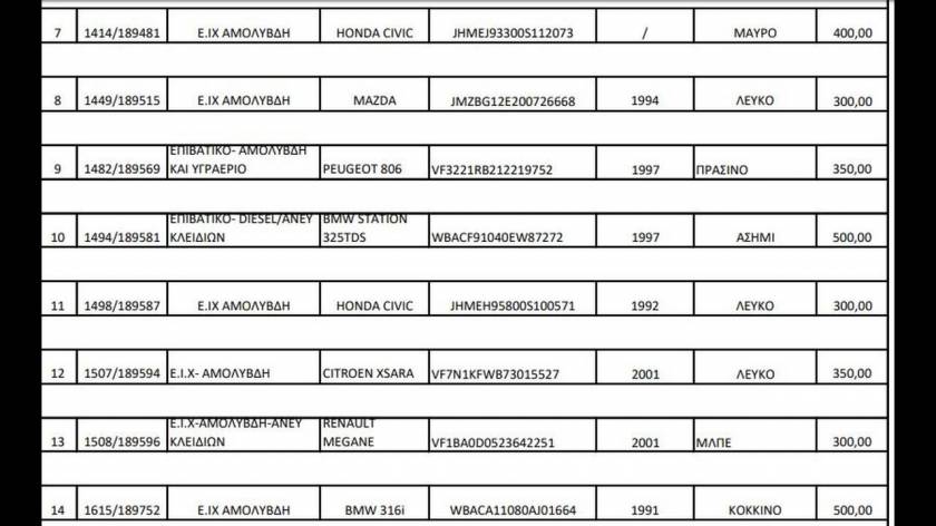 Τα περισσότερα αυτοκίνητα της δημοπρασίας που εκποιούνται με τιμές εκκίνησης τα 300 ευρώ έχουν κυκλοφορήσει για πρώτη φορά μετά το 1991 έως και το 2000 δηλαδή έχουν ηλικία από 28 έως και 19 έτη!