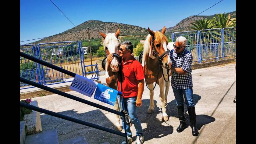 Εκλογές 2019: Πήγαν στο εκλογικό κέντρο για να ψηφίσουν με... άλογα