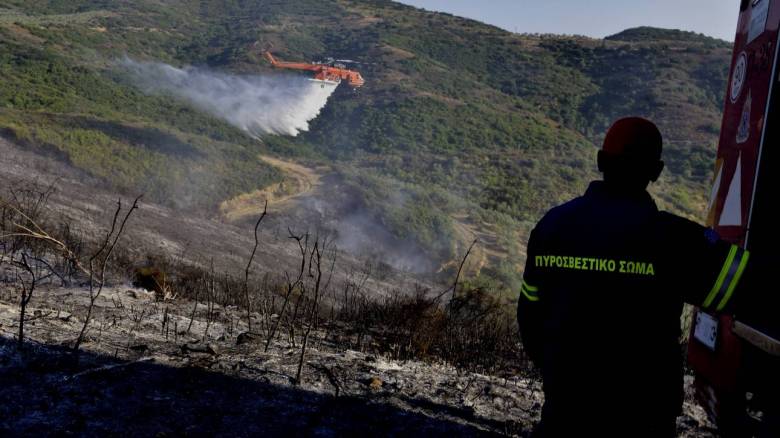 Στο σημείο έσπευσαν και επιχειρούν 29 πυροσβέστες με 14 οχήματα, πεζοπόρο τμήμα 6 ατόμων, 2 αεροσκάφη και 2 υδροφόρες ΟΤΑ.