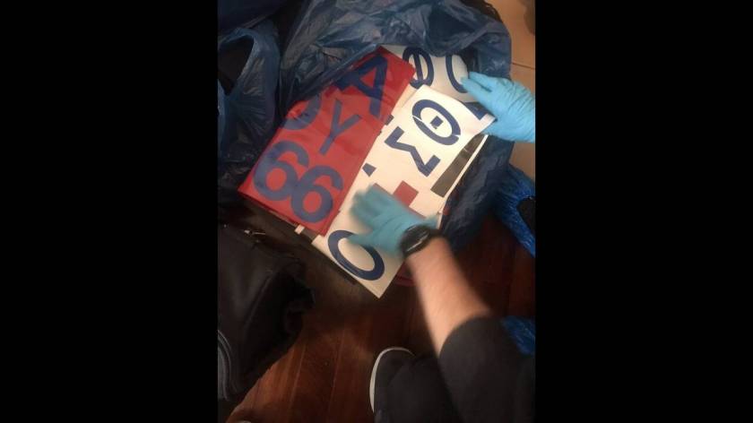 - πλήθος πλαστών πινακίδων κυκλοφορίας οχημάτων (4 αυτοκινήτων και 1 μοτοσικλέτας)