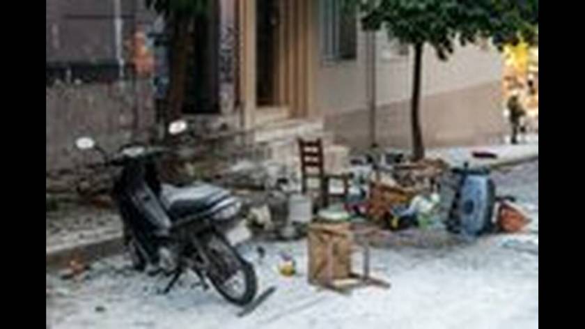 - Στην ταράτσα, χρησιμοποιούμε πέτρες, μπογιά, πυροσβεστήρες στους μπάτσους