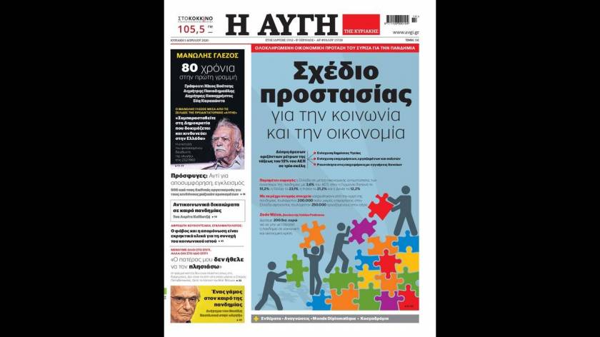 H ΑΥΓΗ της Κυριακής: Σχέδιο προστασίας για την κοινωνία και την οικονομία