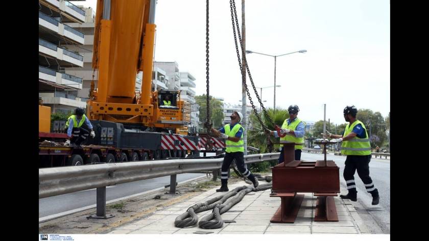 Τοποθετήθηκε η νέα πεζογέφυρα στην Ποσειδώνος - Κανονικά η κυκλοφορία των οχημάτων