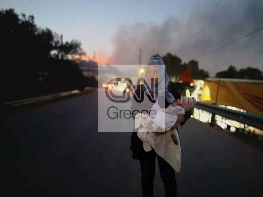 Οικογένειες που είχαν μείνει εκεί φεύγουν άρον άρον από το σημείο για να σωθούν από τις φλόγες, κρατώντας τα μωρά στην αγκαλιά τους.