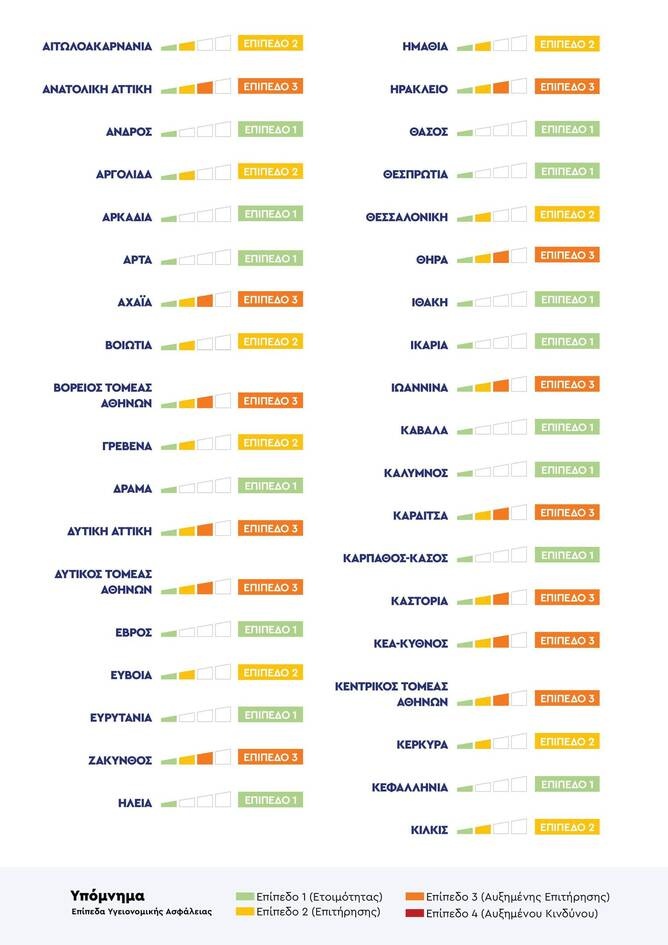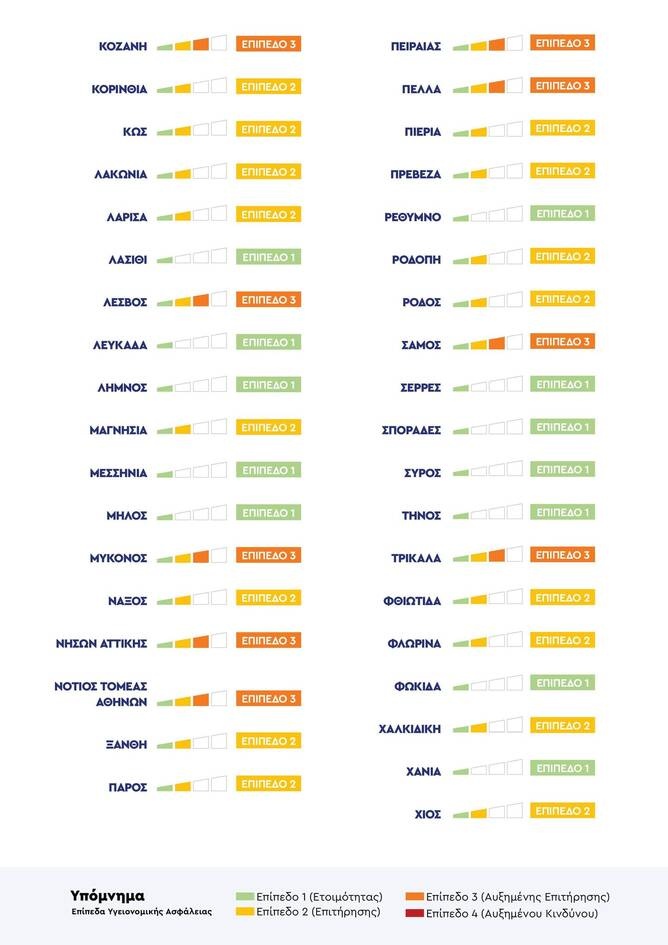 Δείτε ΕΔΩ το επίπεδο συναγερμού ανά περιφερειακή ενότητα Δείτε ΕΔΩ τα μέτρα εν ισχύ ανά επίπεδο συναγερμού