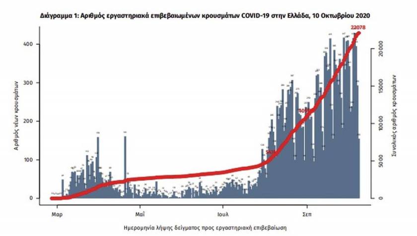Συγκεκριμένα, ο ΕΟΔΥ ανακοίνωσε 306 νέα κρούσματα του νέου ιού στη χώρα, εκ των οποίων 57 συνδέονται με γνωστές συρροές και 30 εντοπίστηκαν κατόπιν ελέγχων στις πύλες εισόδου της χώρας. Ο συνολικός αριθμός των κρουσμάτων είναι 22078, εκ των οποίων το 55.7% άνδρες.
