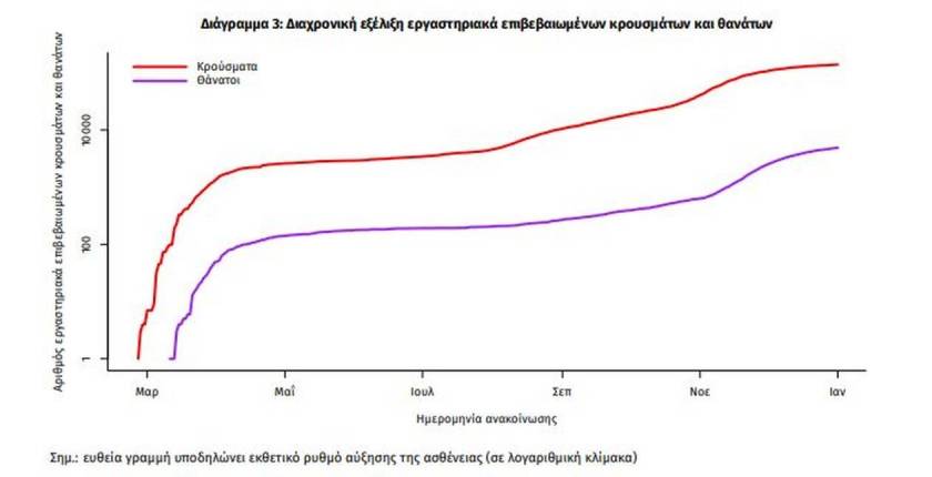 Τέλος, έχουμε 43 νέους θανάτους από τη νόσο COVID-19, φθάνοντας τους 4881 θανάτους συνολικά στη χώρα, εκ των οποίων 2895 (59.3%) άνδρες. Η διάμεση ηλικία των θανόντων συμπολιτών μας ήταν τα 79 έτη και το 95.6% είχε κάποιο υποκείμενο νόσημα ή/και ηλικία 70 ετών και άνω.