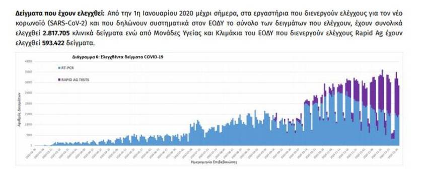 Συγκεκριμένα, ο ΕΟΔΥ ανακοίνωσε σήμερα, Πρωτοχρονιά 597 νέα κρούσματα της λοίμωξης του νέου κορωνοϊού (COVID-19), εκ των οποίων 5 εντοπίστηκαν κατόπιν ελέγχων στις πύλες εισόδου της χώρας.