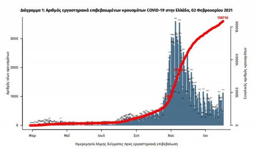 Συγκεκριμένα, σήμερα, Τρίτη 2 Φεβρουαρίου, ο ΕΟΔΥ ανακοίνωσε 1.261 νέα κρούσματα της λοίμωξης του νέου κορωνοϊού (COVID-19), εκ των οποίων 18 εντοπίστηκαν κατόπιν ελέγχων στις πύλες εισόδου της χώρας.