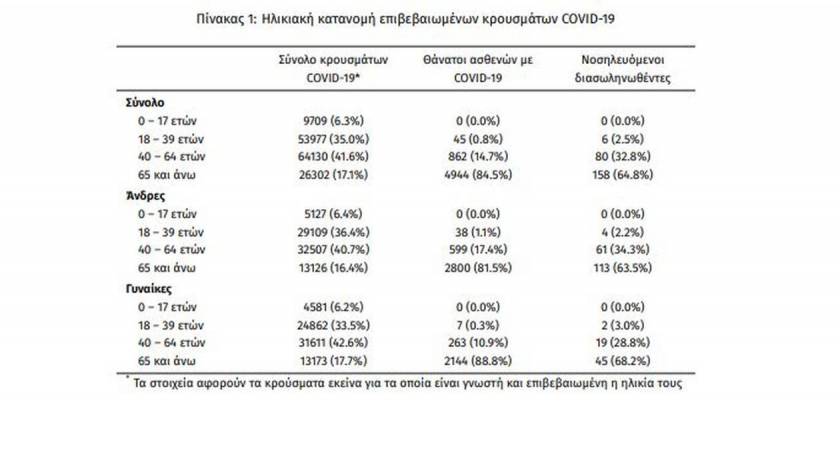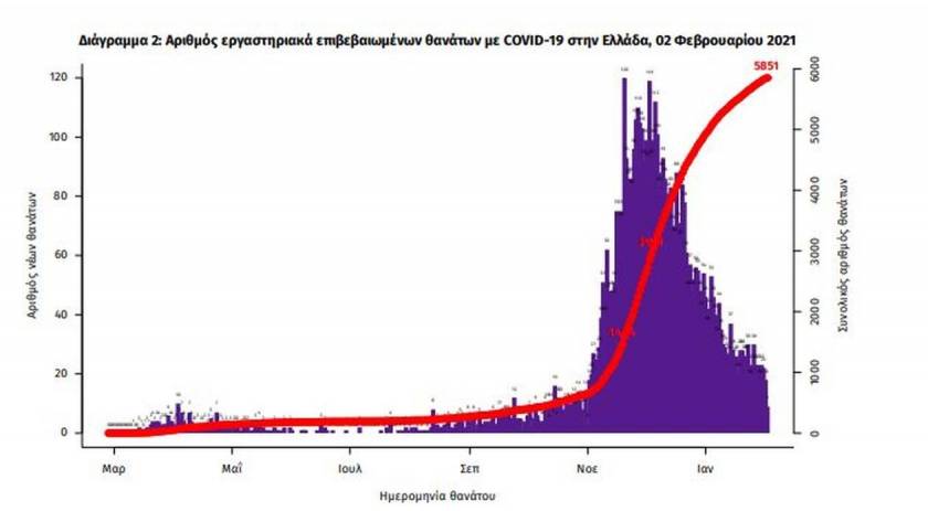 Τέλος, έχουμε 22 νέους θανάτους από τη νόσο COVID-19, φθάνοντας τους 5.851 θανάτους συνολικά στη χώρα, εκ των οποίων 3.437 (58,7%) άνδρες. Η διάμεση ηλικία των θανόντων συμπολιτών μας ήταν τα 79 έτη και το 95,5% είχε κάποιο υποκείμενο νόσημα ή/και ηλικία 70 ετών και άνω.