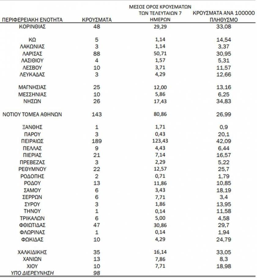 Αναλυτικά η γεωγραφική κατανομή των νέων κρουσμάτων: