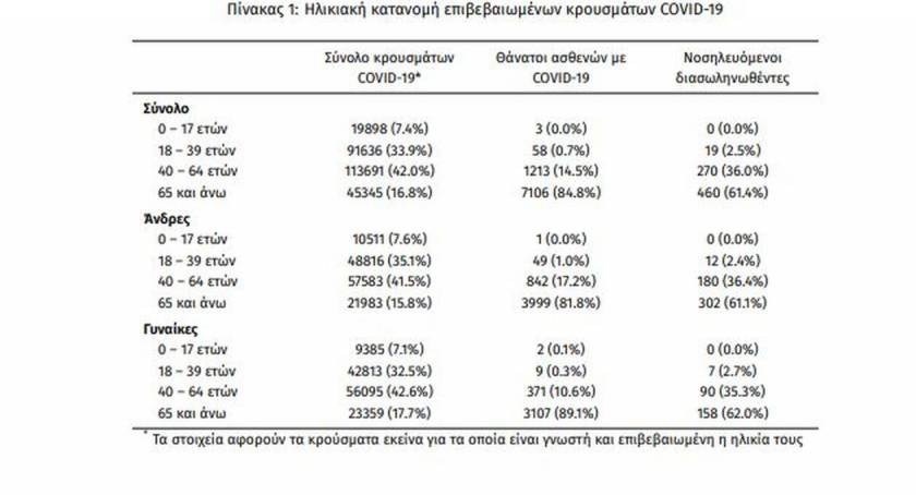 Η διάμεση ηλικία των κρουσμάτων είναι 44 έτη (εύρος 0.2 έως 105 έτη), ενώ η διάμεση ηλικία των θανόντων είναι 79 έτη (εύρος 0 έως 103 έτη).»