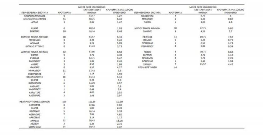 Tα κρούσματα στις περιφερειακές ενότητες που ανήκουν στην Αττική: