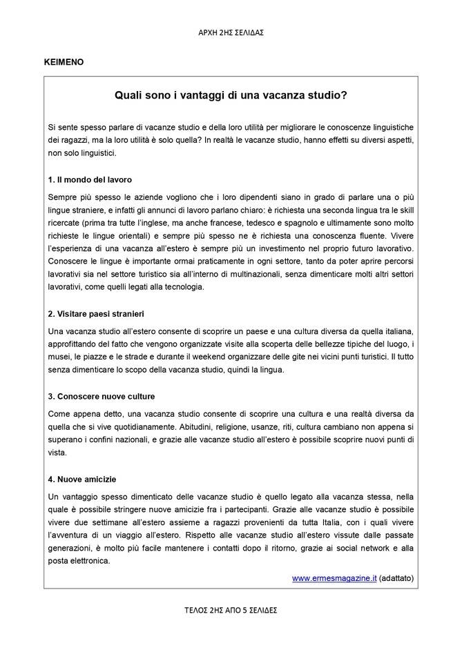 Στη δημοσιότητα έδωσε το υπουργείο Παιδείας τα θέματα που κλήθηκαν να λύσουν στο μάθημα των Ιταλικών οι υποψήφιοι που έχουν δηλώσει συμμετοχή στα Ειδικά Μαθήματα στο πλαίσιο των Πανελλαδικών Εξετάσεων 2021.