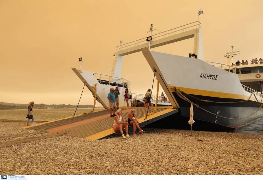 Φωτιά Εύβοια: Απομακρύνονται με πλωτά μέσα οι κάτοικοι από το Πευκί
