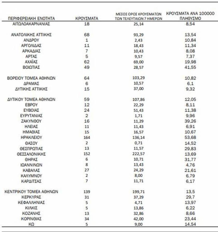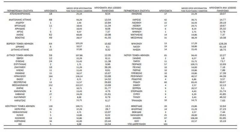 Η γεωγραφική κατανομή των νέων κρουσμάτων αναλυτικά: