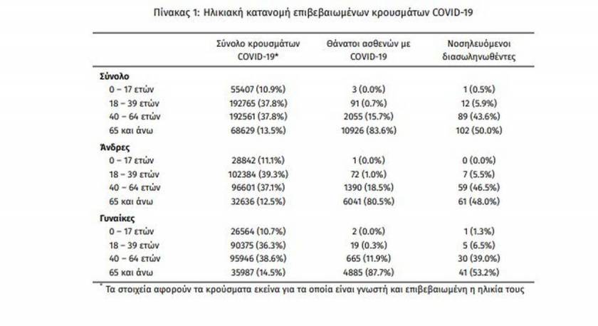 Η διάμεση ηλικία των κρουσμάτων είναι 40 έτη (εύρος 0.2 έως 106 έτη), ενώ η διάμεση ηλικία των θανόντων είναι 78 έτη (εύρος 0.2 έως 106 έτη).»
