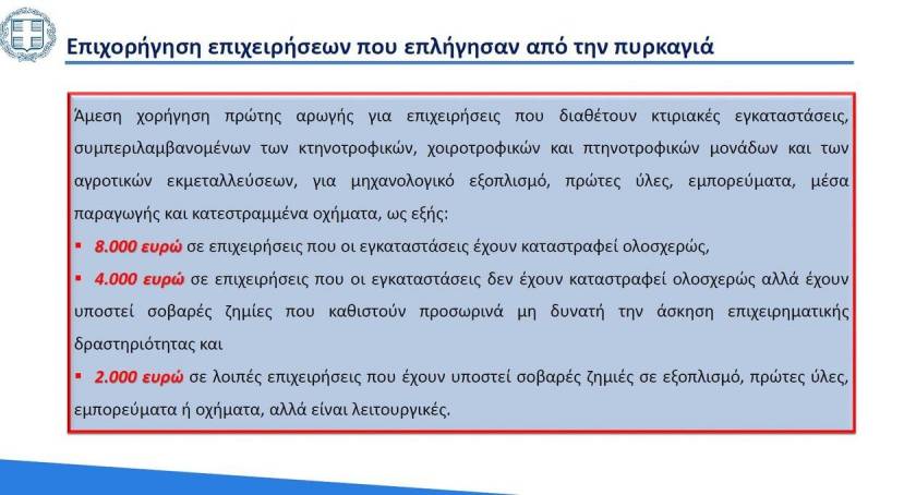 - 8.000 ευρώ σε επιχειρήσεις που οι εγκαταστάσεις έχουν καταστραφεί ολοσχερώς,