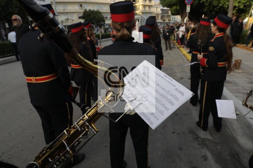 Η μεταφορά της σορού από την πλατεία της αγοράς στην Μητρόπολη Χανίων γίνεται με τα πόδια με συνοδεία βρακοφόρων και της φιλαρμονικής μπάντας του δήμου Χανίων.