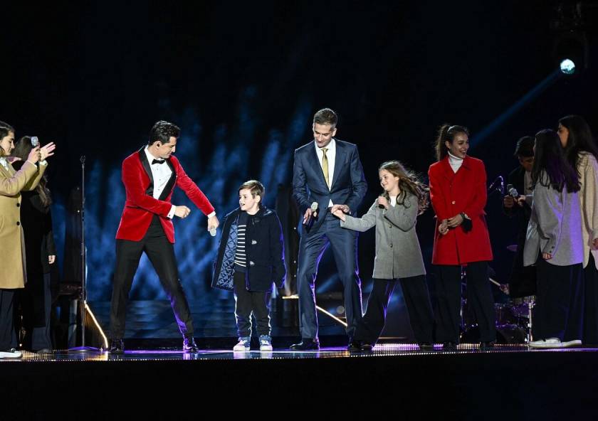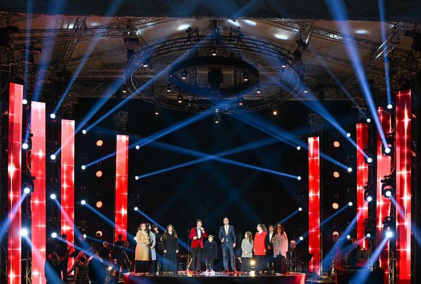 Λίγο πριν από τα μεσάνυχτα, ο Σάκης Ρουβάς κάλεσε στη σκηνή τον δήμαρχο Αθηναίων Κώστα Μπακογιάννη και τη Χορωδία των Παιδιών της «Κιβωτού του Κόσμου» για να καλωσορίσουν όλοι μαζί το 2022.