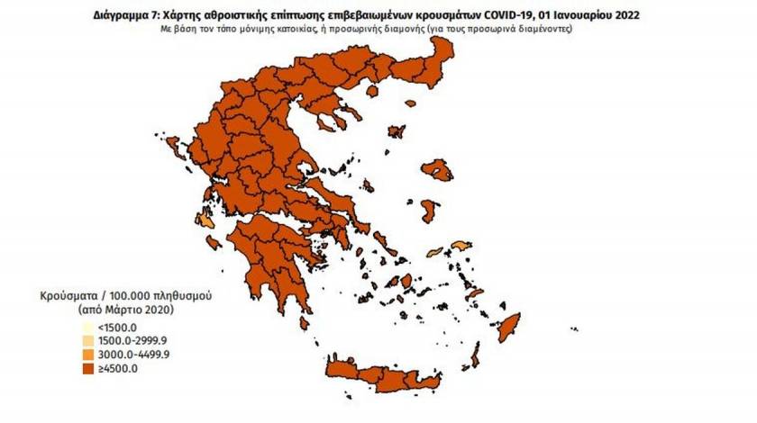 Σήμερα, Σάββατο 1η Ιανουαρίου 2022, ο ΕΟΔΥ ανακοίνωσε νέα «έκρηξη» κρουσμάτων στη χώρα με 30.010 νέες μολύνεις.