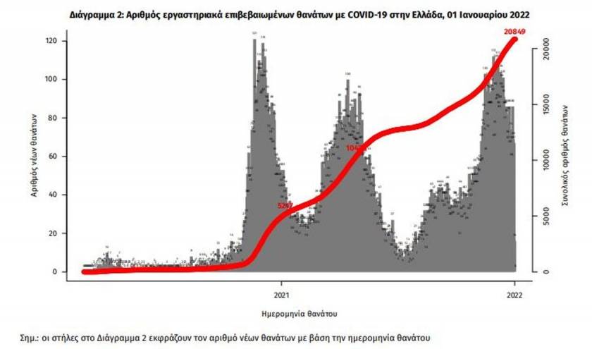 Οι νέοι θάνατοι ασθενών με COVID-19 είναι 59, ενώ από την έναρξη της επιδημίας έχουν καταγραφεί συνολικά 20.849 θάνατοι. Το 95.1% είχε υποκείμενο νόσημα ή/και ηλικία 70 ετών και άνω.