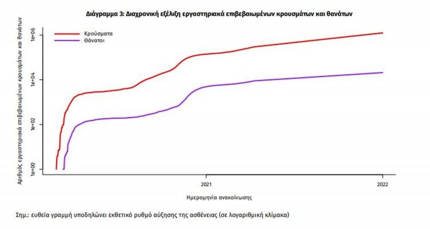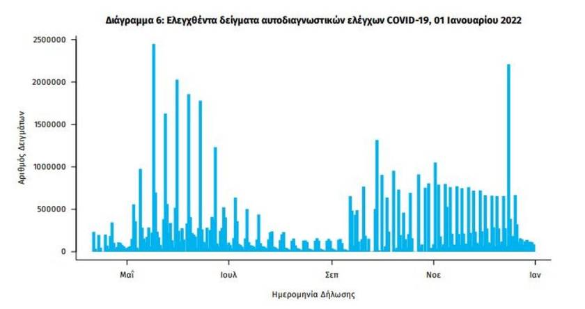 «Τα νέα εργαστηριακά επιβεβαιωμένα κρούσματα της νόσου που καταγράφηκαν τις τελευταίες 24 ώρες είναι 30.010, εκ των οποίων 20 εντοπίστηκαν κατόπιν ελέγχων στις πύλες εισόδου της χώρας. Ο συνολικός αριθμός των κρουσμάτων ανέρχεται σε 1.240.862 (ημερήσια μεταβολή +2.5%), εκ των οποίων 50.3% άνδρες.