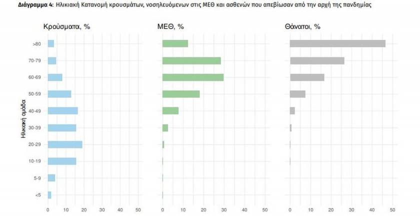 Οι εισαγωγές νέων ασθενών Covid-19 στα νοσοκομεία της επικράτειας είναι 442 (ημερήσια μεταβολή +0.68%). Ο μέσος όρος εισαγωγών του επταημέρου είναι 378 ασθενείς. Η διάμεση ηλικία των κρουσμάτων είναι 36 έτη (εύρος 0.2 έως 110 έτη), ενώ η διάμεση ηλικία των θανόντων είναι 78 έτη (εύρος 0.2 έως 106 έτη)».