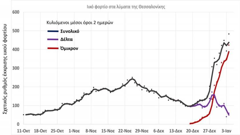 Όπως φαίνεται στα διαγράμματα, για πρώτη φορά μετά την εκρηκτική αύξηση που είχε καταγραφεί από τις τελευταίες ημέρες του Δεκεμβρίου και μετά, παρατηρούνται ενδείξεις ανάσχεσης του ρυθμού αύξησης του ιικού φορτίου, πλην όμως στο υψηλότερο επίπεδο από την αρχή της πανδημίας.