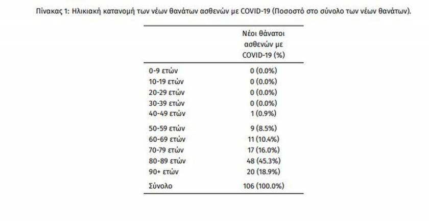 Η διάμεση ηλικία των κρουσμάτων είναι 35 έτη (εύρος 0.2 έως 106 έτη), ενώ η διάμεση ηλικία των θανόντων είναι 78 έτη (εύρος 0.2 έως 106 έτη).»