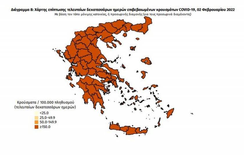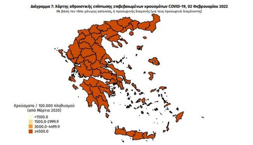 « Τα νέα εργαστηριακά επιβεβαιωμένα κρούσματα της νόσου που καταγράφηκαν τις τελευταίες 24 ώρες είναι 18.825, εκ των οποίων 58 εντοπίστηκαν κατόπιν ελέγχων στις πύλες εισόδου της χώρας. Ο συνολικός αριθμός των κρουσμάτων ανέρχεται σε 1.984.544 (ημερήσια μεταβολή +1.0%), εκ των οποίων 49.8% άνδρες. Με βάση τα επιβεβαιωμένα κρούσματα των τελευταίων 7 ημερών, 429 θεωρούνται σχετιζόμενα με ταξίδι από το εξωτερικό και 2.409 είναι σχετιζόμενα με ήδη γνωστό κρούσμα.