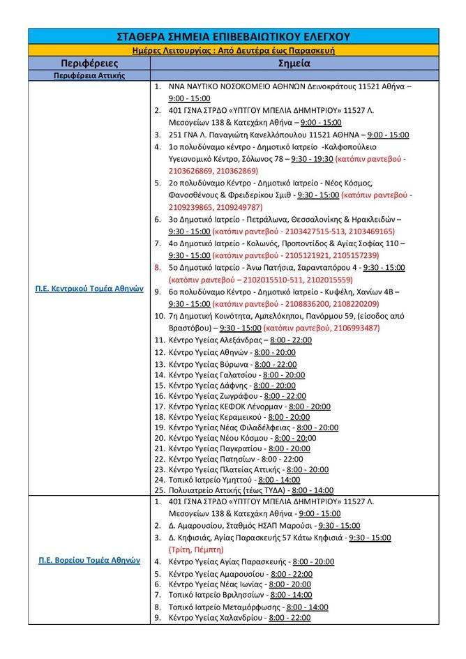 *Ενδέχεται να υπάρξουν τροποποιήσεις – αλλαγές στα σημεία και στο ωράριο των μαζικών δειγματοληψιών.