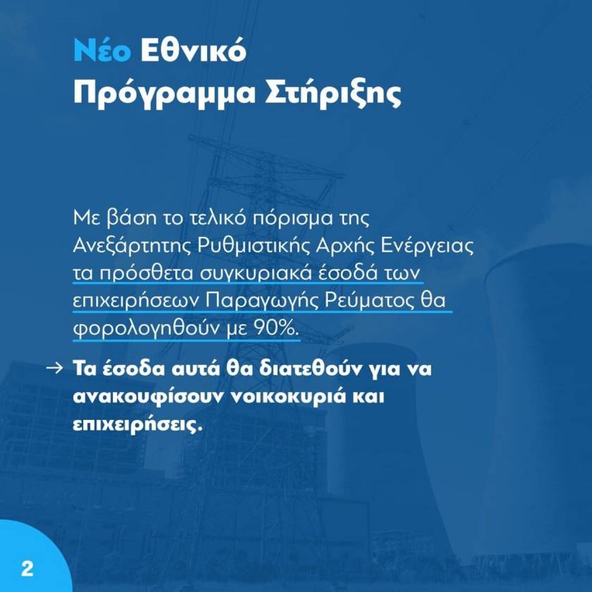 Η νέα δέσμη παρεμβάσεων θα απορροφήσει το 70% έως 80% της αύξησης στην τιμή της κιλοβατώρας για τα νοικοκυριά, τις επιχειρήσεις και τους αγρότες μας. Με ορίζοντα τους επόμενους 12 μήνες και με παρεμβάσεις σε όλα τα μέτωπα.
