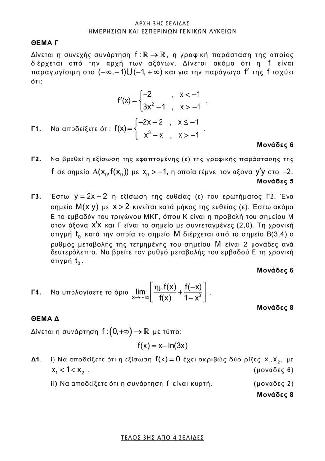 Ανακοινώθηκαν από το υπουργείο Παιδείας τα θέματα που καλούνται να λύσουν οι υποψήφιοι των ΓΕΛ στα Μαθηματικά, στις Πανελλήνιες Εξετάσεις.