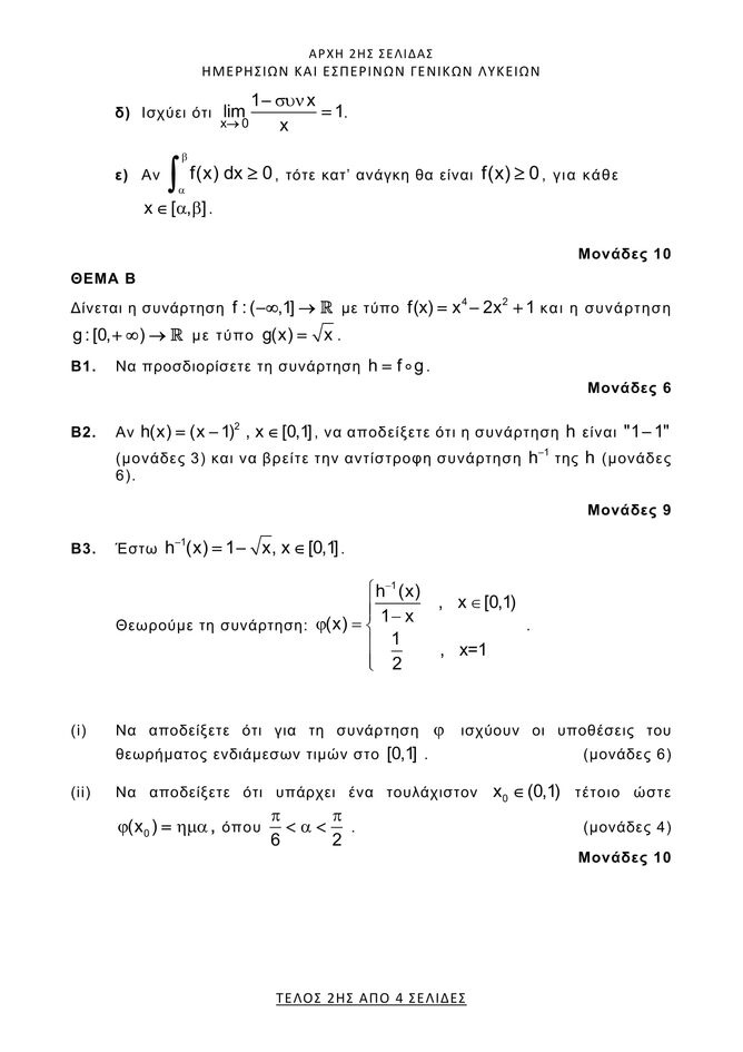 ΣΑΒΒΑΤΟ | 4-6-2022 | - ΜΑΘΗΜΑΤΙΚΑ (Άλγεβρα) |