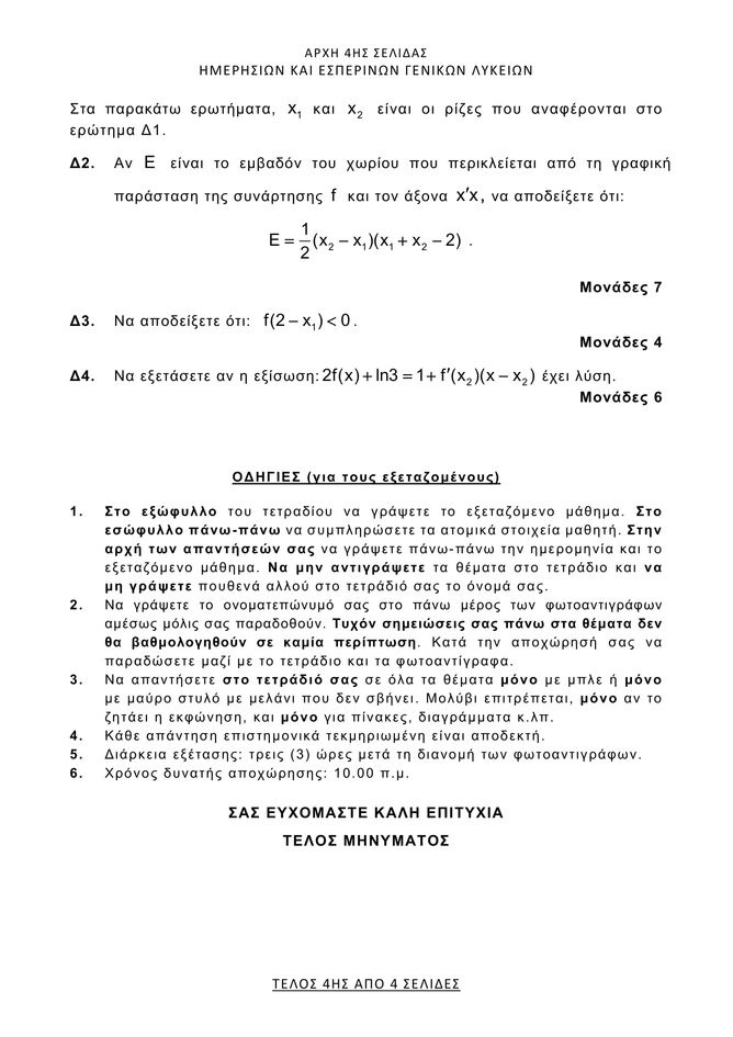 Το Δ θέμα θα το χωρίσουμε σε δυο υποκατηγορίες τα υποερωτήματα Δ1 και Δ2 ήταν αρκετά εύκολα σε αντίθεση με τα δυο τελευταία υποερωτηματα που ήταν ιδιαίτερα απαιτητικά».