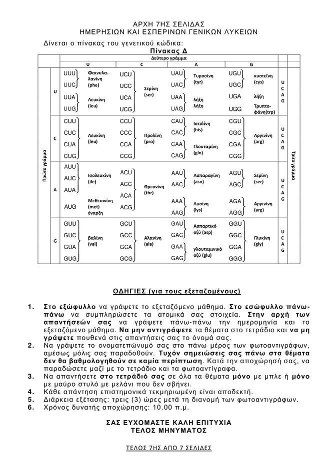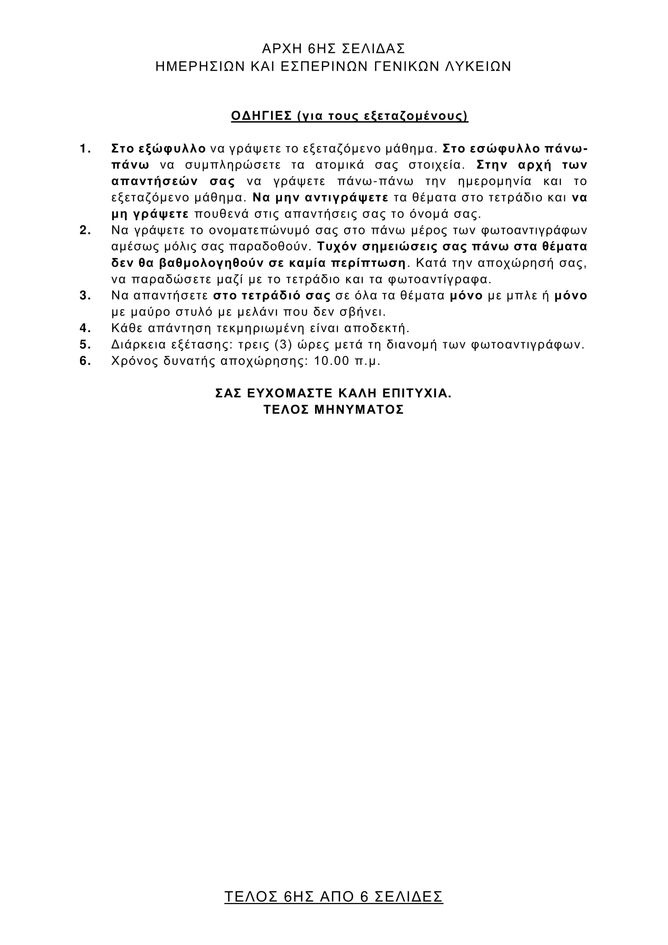 Η εξεταστέα ύλη και τα θέματα των εξετάσεων είναι κοινά για όλους τους υποψηφίους ημερησίων και εσπερινών ΓΕΛ.