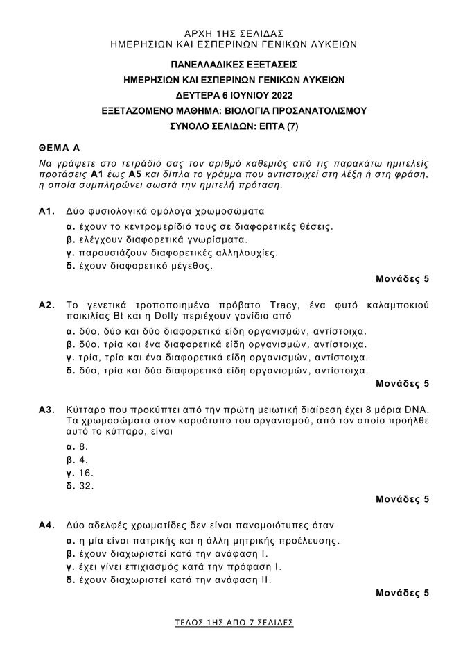 ΔΕΥΤΕΡΑ | 6-6-2022 | - ΑΡΧΑΙΑ ΕΛΛΗΝΙΚΑ - ΜΑΘΗΜΑΤΙΚΑ - ΒΙΟΛΟΓΙΑ | Ο.Π. ΑΝΘΡΩΠΙΣΤΙΚΩΝ ΣΠΟΥΔΩΝ Ο.Π. ΘΕΤΙΚΩΝ ΣΠΟΥΔΩΝ Ο.Π. ΣΠΟΥΔΩΝ ΥΓΕΙΑΣ |